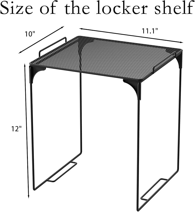 - 【EASY INSTALLATION LOCKER STAND】The mesh metal locker shelf is easy to install in seconds, it’s a sturdy option for storing books, binders, and other items, while also allowing for easy visibility and accessibility.
