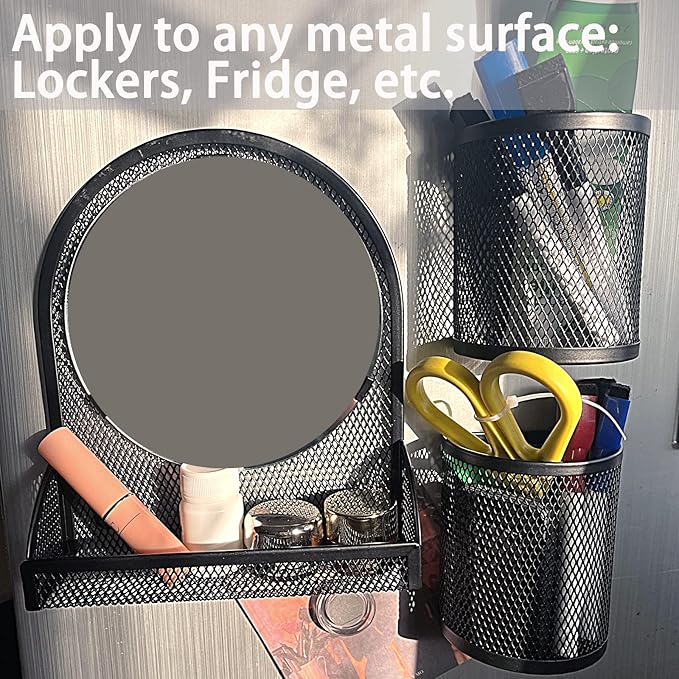- 【LOCKER DECOR KIT】The Mesh Locker Organization Kit includes a locker shelf, 2 magnetic pencil cup, and 1 magnetic mirror. All the locker essentials are designed to maximize organization and functionality in your locker space in school or office.