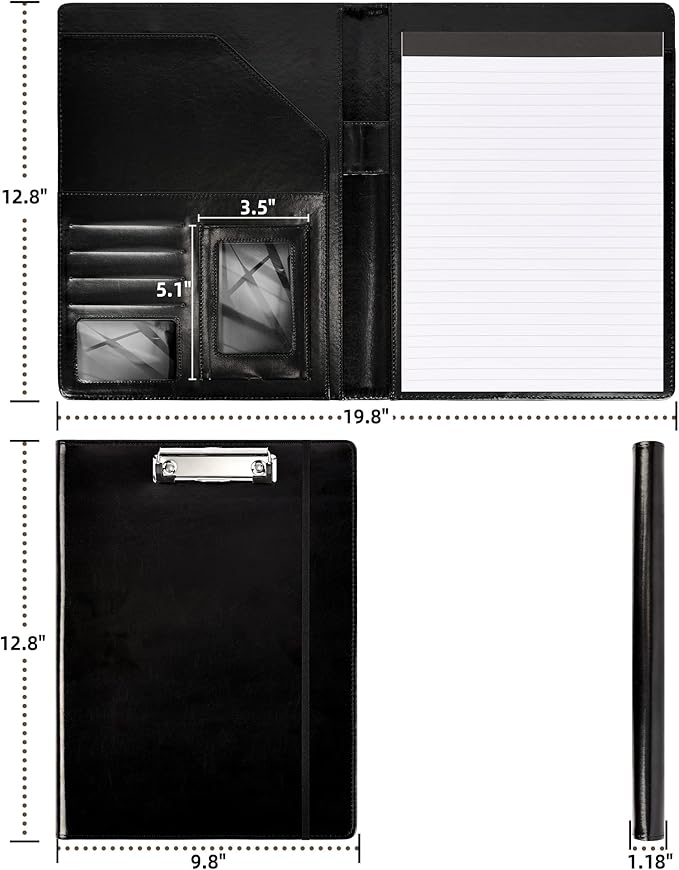 - ✔Premium Material and Ideal Size: Our clipboard holder is made of high-quality PU leather material and reinforced stitching, making it more durable than cardboard ones. The portfolio binder has durable rounded edges for protection against wear and tear. The expanded size is 19.8 x 12.8", and the folded size is 12.8 x 9.8", making it ideal for A4/Letter. It's simply the perfect size for all your needs!