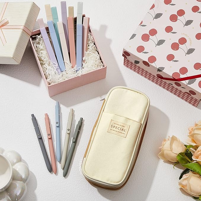 - Nice Combination for You: the package you will receive comes with 12 pieces of pastel highlighters in different colors, 5 pieces of writing pens and 1 piece of pencil pouch; The abundant quantity and ideal combination can meet your different use and replacement needs, and you can share them with your family and friends