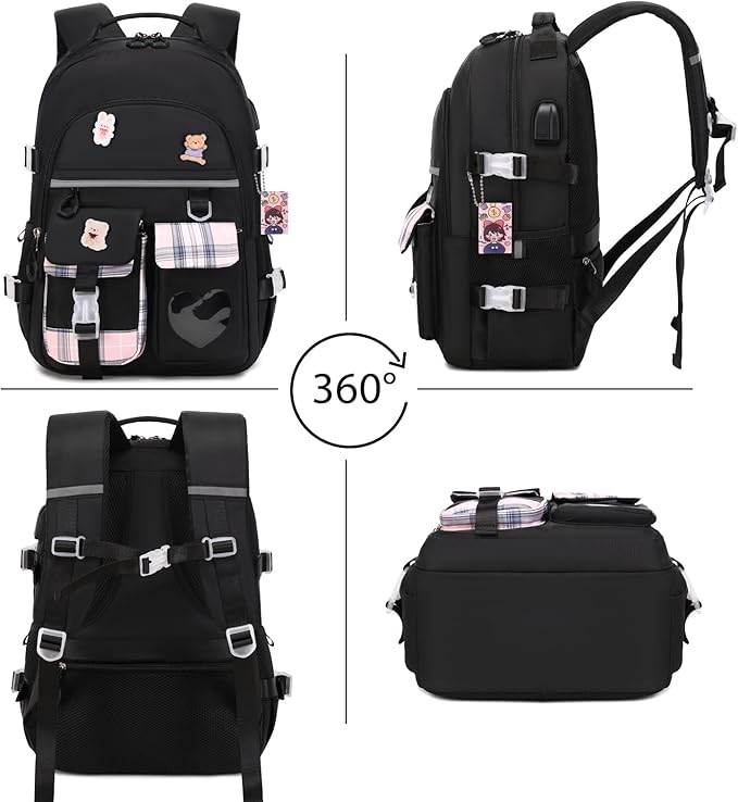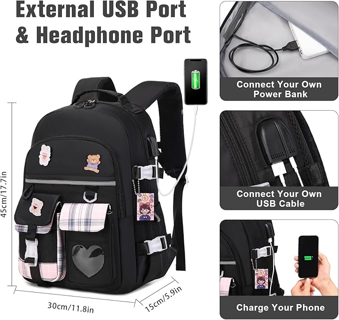 - 【USB & Headset Port Design】Our girls' backpack features a built-in USB charging cable and a headphone interface, making it easy to charge your phone or other electronic devices while on-the-go. Enjoy hands-free listening to music or podcasts during your commute or outdoor activities, such as walking or biking.