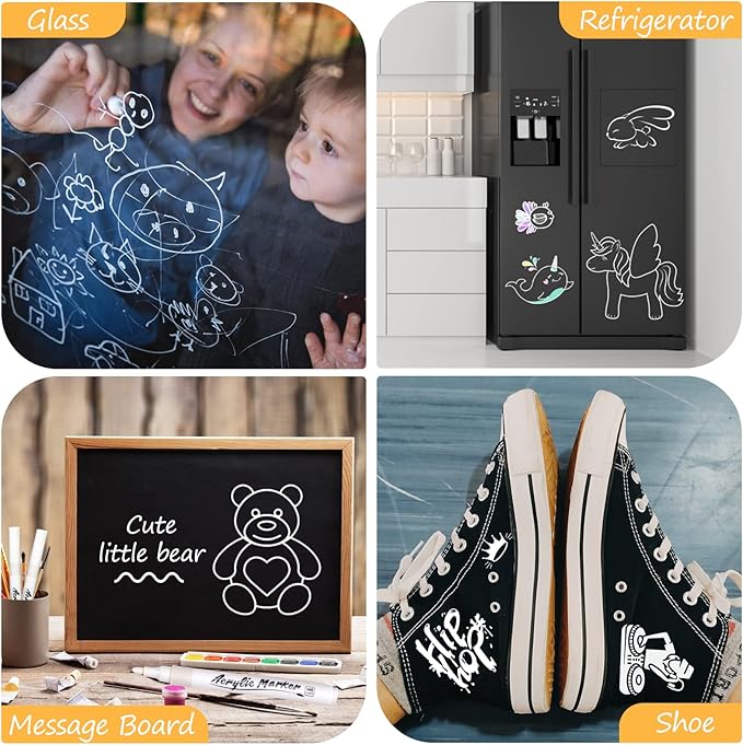 - 【SAFE & NON-TOXIC】Acrylic white paint marker with fast drying for long lasting colour, safe ink, no leakage, no harmful chemicals. Compliant with ASTM D-4236.