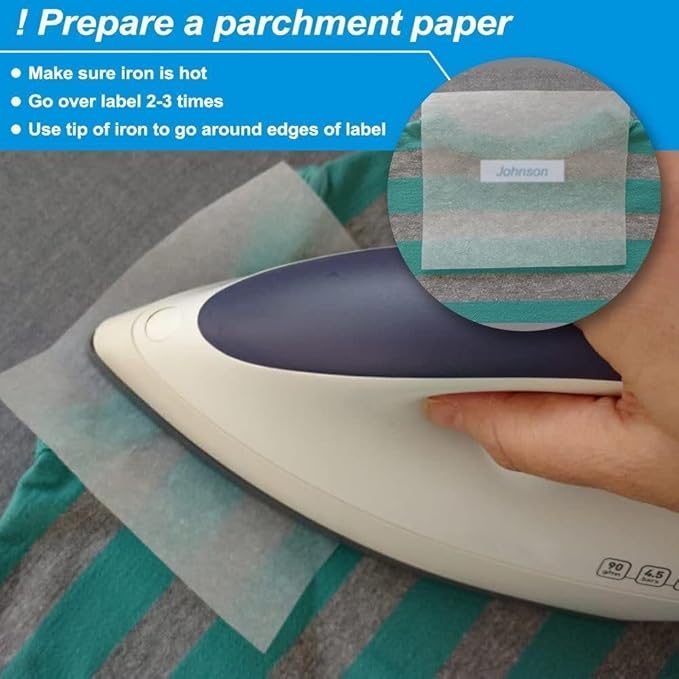 - This tape is not fabric or cloth material, specially formulated for use on fabric. Printing results with black lettering on a white cloth background. The label can be ironed onto virtually any cotton item,The durable alternative to sew-on name tags.