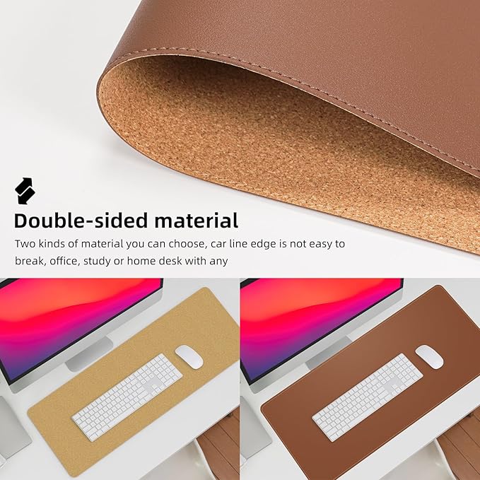 - Elevate Your Workspace: Our reversible desk pad is designed to complement any office or home desk with its premium materials and elegant black thread stitching. The natural cork base provides extra grip to keep your desk mat in place.