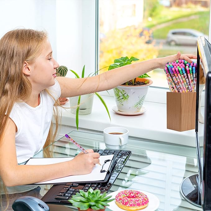 - Donut Themed Pencils: Contains 100 round pink pencils with various donut designs and patterns for kids and girls.