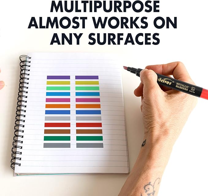 - 24 Bulk Set 12 Assorted Colors: 12pcs fine tip and 12pcs chisel tip markers. 2x orange, light blue, pink, deep green, gold, light green, white, red, yellow, deep blue, violet, silver