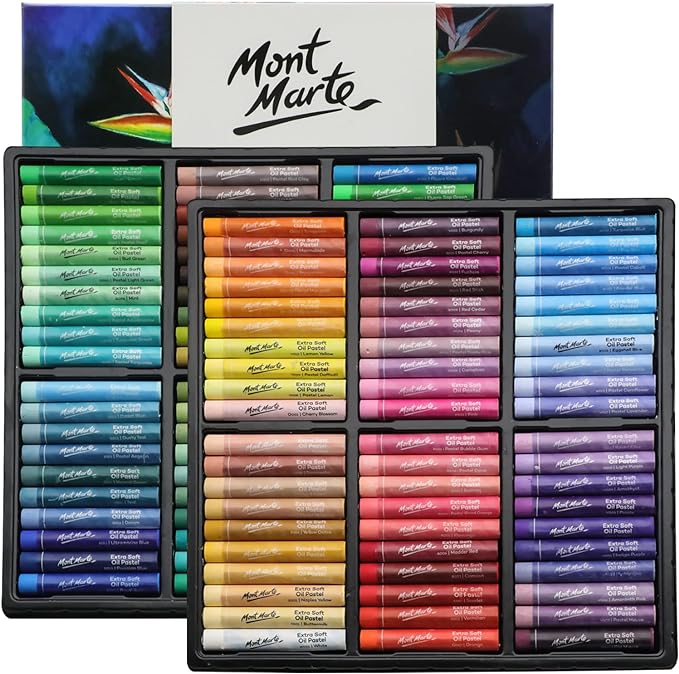 Mont Marte Extra Soft Oil Pastels Vibrant Hues Premium 120pc, Assorted Bright Colors, Vibrant, Buttery, Versatile Art Pastels for Blending, Layering & Shading, Art, Craft, Coloring and Sketching
