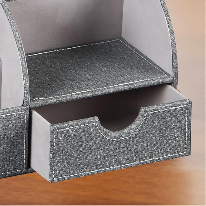 Desk Organizer, PU Leather Desktop Organizers and Accessories, Office Supplies Multi-Functional Caddy Storage with 6 Compartments and 1 Drawer,