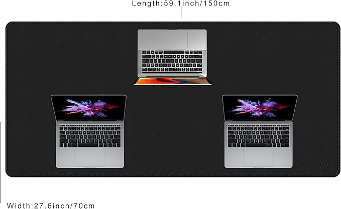- Large Desk Mat: Size of desk mats on top of desks is 59 x 27.6 inches / 150 x 70 cm (LxW). The XXL Large desk pad is a big mouse pad for desk, also a full desk mat. It's longer, bigger and thick. The huge desk mat is large enough to accommodate your laptop, computer, monitor, mouse and keyboard, etc.