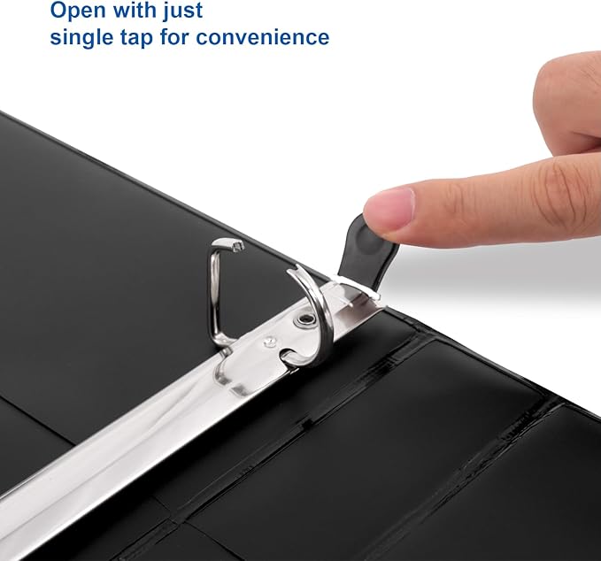 - The binder features a convenient single-tap clip mechanism that allows for effortless opening and closing of the rings.