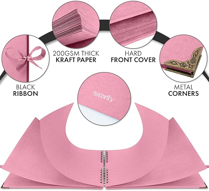 - The spiral bound spine allows the scrap book to expand to fit in your photos, postcards, souvenirs. You can tie the ribbon into a bow or other style that you like and make your photo album scrapbook as individual as your memories and keep them endlessly