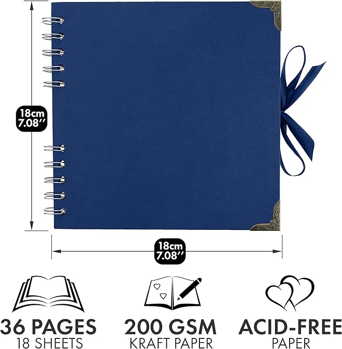 Bstorify Square Scrapbook Photo Albums 7 x 7 Inch Blue Hardcover with Ribbon Closure - Ideal for Scrapbooking, Art & Craft Projects