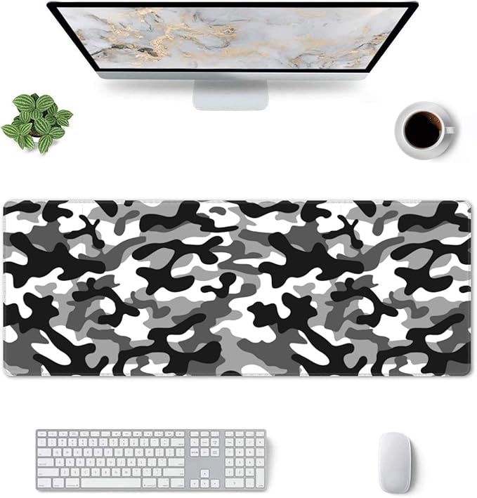 - Durable and Comfortable Material: The material of keyboard mats for desk, keyboard mat is thick and soft to the touch, which helps to cancel noise while you are typing on the computer desk mat. Our 3mm thick extended wireless gaming mouse pad for desk protector keep your hands free and are made of premium materials for comfortable gaming or work. Desk pads on top of desks design with black white army military texture camouflage.