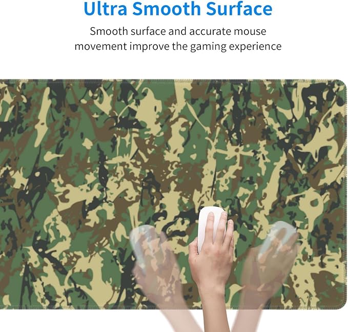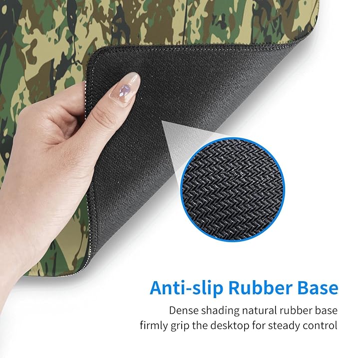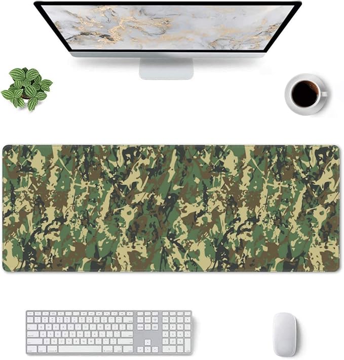 - Durable and Comfortable Material: The material of large mouse pad, gaming pc desktop pad is thick and soft to the touch, which helps to cancel noise while you are typing on the computer mouse wireless mat. Our 3mm thick large desk mat keep your hands free and are made of premium materials for comfortable gaming or work. Large mouse pad for desk design with abstract military camouflage background.