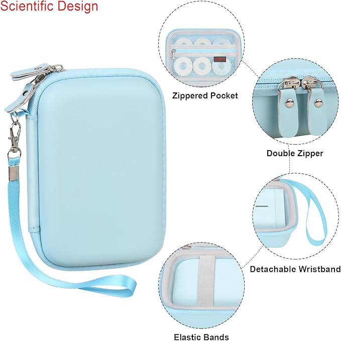 - 【Travel Friendly】【 Lightweight Compact- Strong Durable】--This Lebt mini sticker printer case has a very comfortable portable wristband that allows for convenient portability on the go, suitable for traveling, hiking, camping. or storing Lebt pocket inkless thermal printer when not in use.