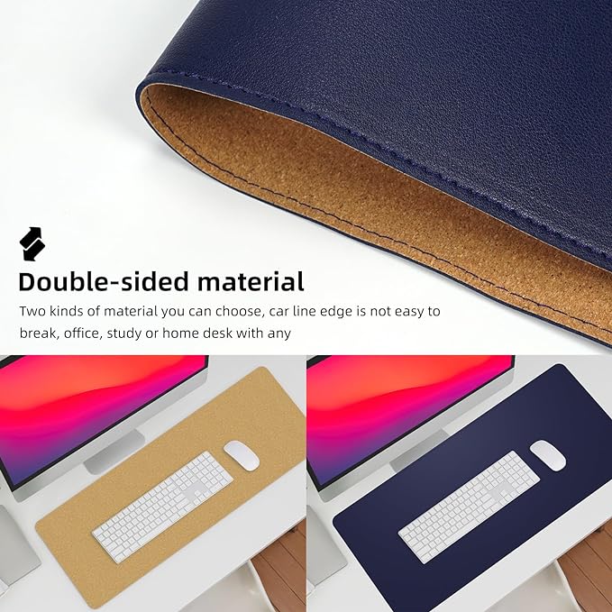 - Double-Sided Design: Choose between two different materials to match your desk and enjoy the high-quality stitching that adds durability and a touch of sophistication to your table mat.