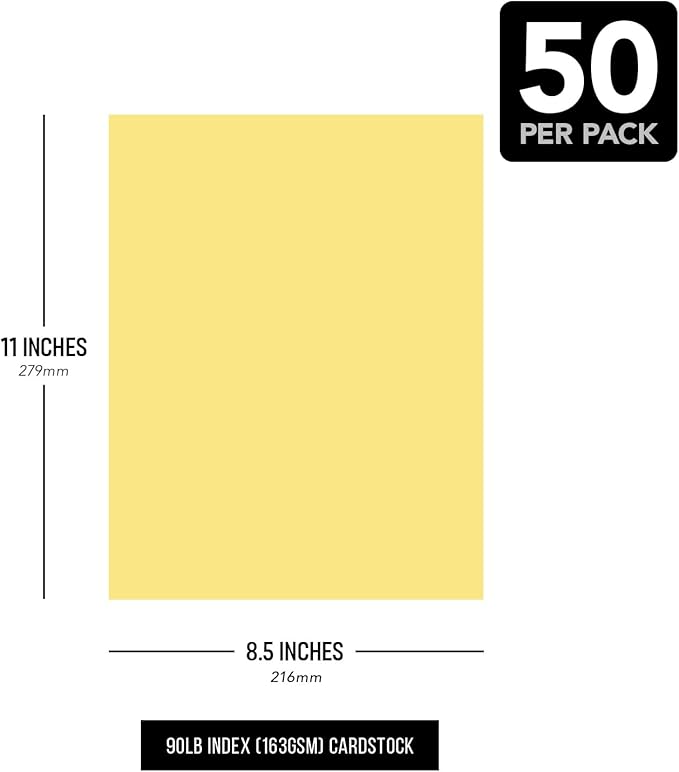 8.5 x 11" Buff Pastel Color Cardstock Paper - Great for Arts and Crafts, Wedding Invitations, Cards and Stationery Printing | Medium to Heavy Card Stock 90lb Index (163gsm) | 50 Sheets per Pack