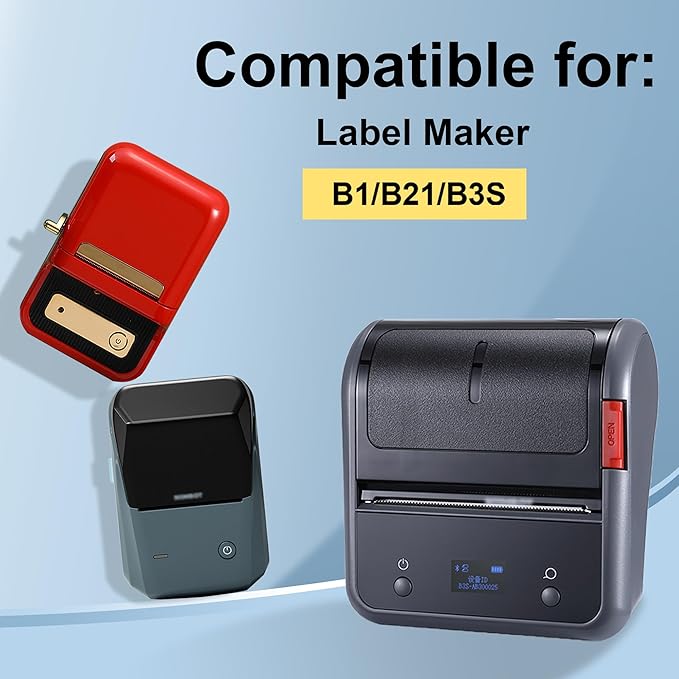 - 🏷️【EASY TO USE】🏷️:This B1 label refill is compatible with B1/B21/B3S label makers. The app allow you print define labels and is downloaded from APP STORE or Google Play. Support a variety of symbols, fonts, graphics, barcodes and other printing, can help you better tag your items in a variety of environments.