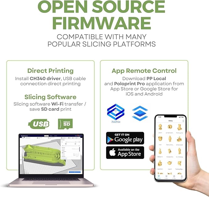 - OPEN SOURCE PRINTING: Use MAC, Windows, or Linux and bring your imagination to life. The WiFI-capable printer is also compatible with a majority of slicing software including WiiBuilder, Cura, Simplify3d, and Slicr3d. Go ahead, dive into the world of 3D printing the easy way!