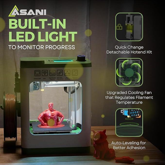 - FULLY ASSEMBLED PRINTER: Unlike other 3D printers that may malfunction if not meticulously assembled correctly, our printer is designed for reliable, long-term use right out of the box. With its compact, space-saving size of 8.3” x 8.3” x 11.4” and a lightweight build, it's perfect for home, classrooms, and dorms, delivering consistent, jaw-dropping prints every time.