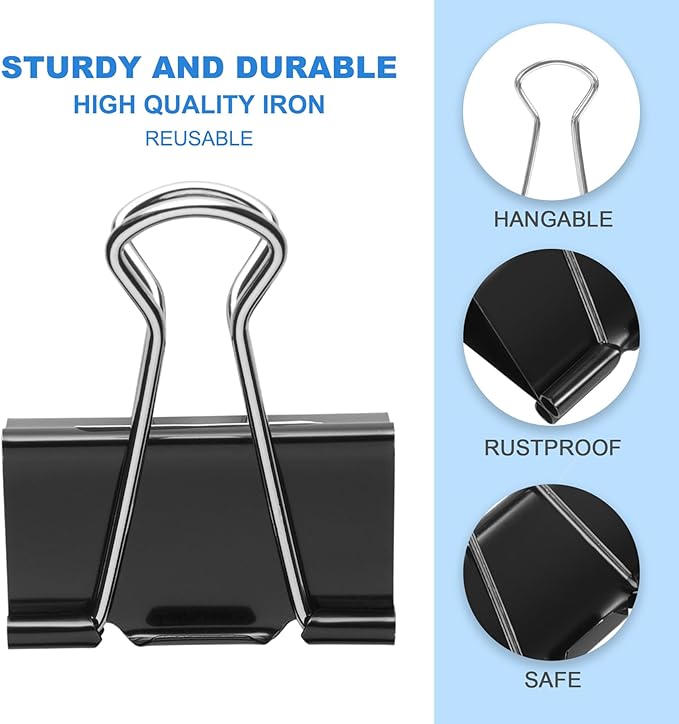 - Great Material: Made of strong tempered steel, solid, durable and rust-resistant. Smooth powder coat finish and nickel plated handles allow paper clamps for continued use and reuse, clips spring back into shape when removed.