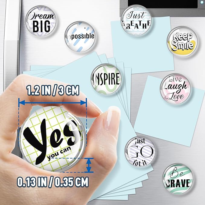 - ✨【Package Contents】This product set includes 12 circular glass fridge magnets measuring 30 x 3.5 mm (1.2 x 0.13 inches). Despite their compact size, these magnets possess strong magnetic force, making them ideal for securing various items to your fridge.