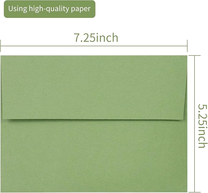 100 Pack Sage green 5x7 Envelopes for 5x7 Cards,Invitations,Wedding,Baby Shower,Graduation,Self Seal Azaza