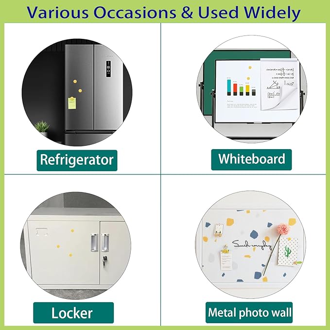 - 【White board magnets set - Versatile Use】Small strong magnets are perfect for smooth metal surfaces such as refrigerators, office cabinets, task tables, whiteboards, magnetic boards and notice boards, etc. You can use it at home, at school, and in the office. People often use our fridge magnets adult as magnets fridge, kitchen magnets, office magnets, heavy duty magnet, classroom magnets, super strong magnets, photo magnets, refrigerator magnets cute, pin board magnets, dry erase magnets.