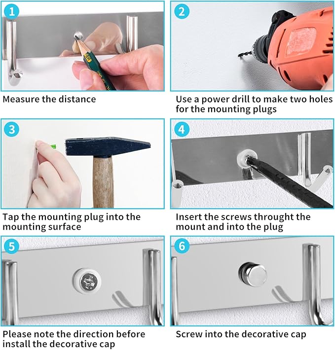 - 【EASY TO INSTALL】 The wall-mounted hat rack comes with all the necessary installation accessories. You only need to prepare a 1/4-inch drill and a Phillips screwdriver. The installation can be quickly completed in just a few minutes.