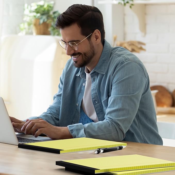 - 【Wide Application】These yellow note pad 8.5 x 11 in writing pads allows for easy portability and use, are nice for business, conference, meeting, office and travel. The legal notepads refills can be used for different nature of tasks like working, studying, data collection, shopping & chores lists, and more. It will perfectly cater to different people with different professions, businesses, and jobs to manage the daily work.