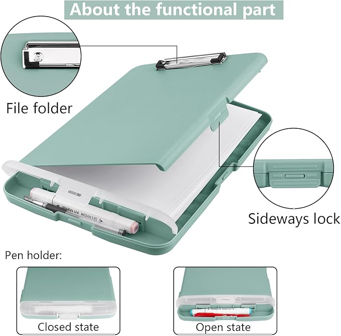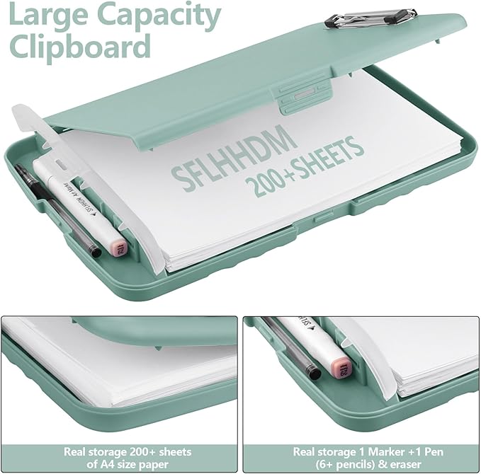 - High Capacity: Clipboard design with storage space, can securely hold up more than 200 letter-sized documents, it has twice the capacity of other clipboards. Have a pen holder at the bottom of the clipboard case, can holds up to 6 pencils