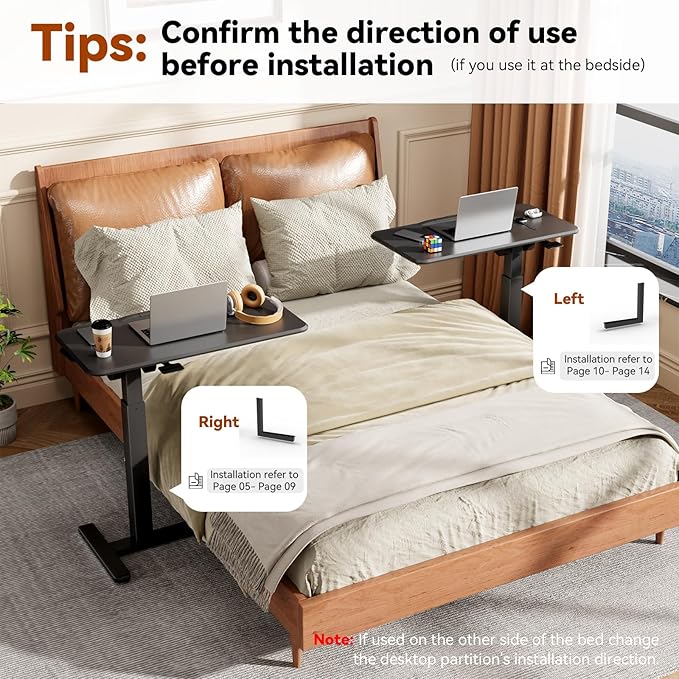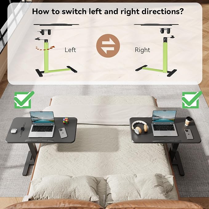 - Left or Right Side Use: Whether placed beside the left or right side of the bed, JOYSEEKER's overbed desk features installation holes on both sides for versatile positioning. Additionally, its 0-90° foldable desktop provides optimal angles to meet your daily needs