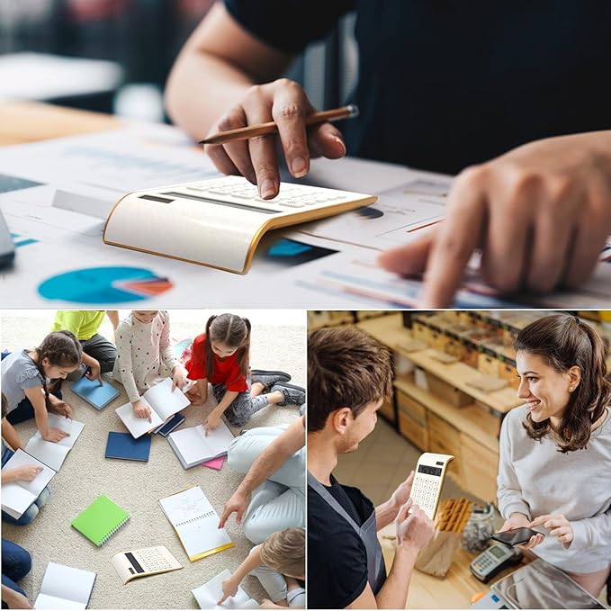 Gold Calculator, 10 Digits Solar Battery Basic, Dual Powered Desktop Calculator, Tilted LCD Display, Inclined Design Slim Desk Calculator