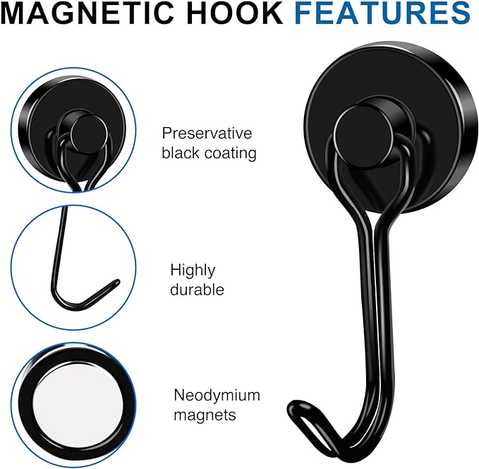 - 【 High-quality Magnetic Coating 】 The magnet hooks adopts a three-layer epoxy resin + nickel + copper coating, providing a lustrous and anti-rust coated steel cup for the magnetic hook, offering protection for the magnetic hook and helping to prevent cracking or breaking.