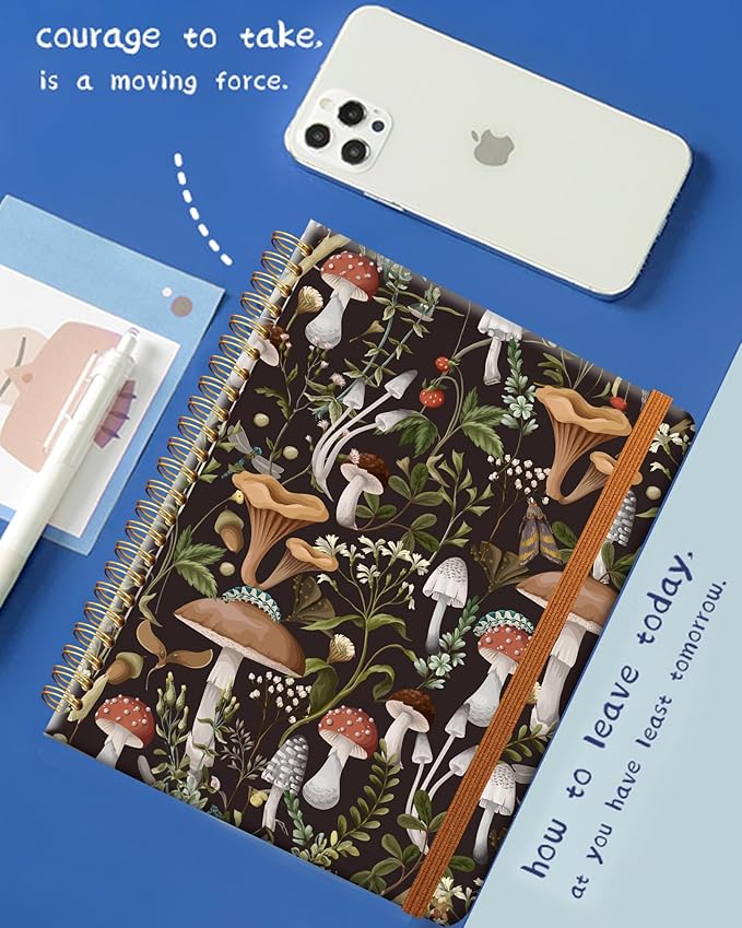 Ruled Spiral Writing Notebook,A5 Hardcover Lined College Journal for Women Lady Girl,Strong Twin-Wire Binding with Premium Paper,8.4" X 6",Perfect for School,Office,Home Gifts(Autumn mushroom)