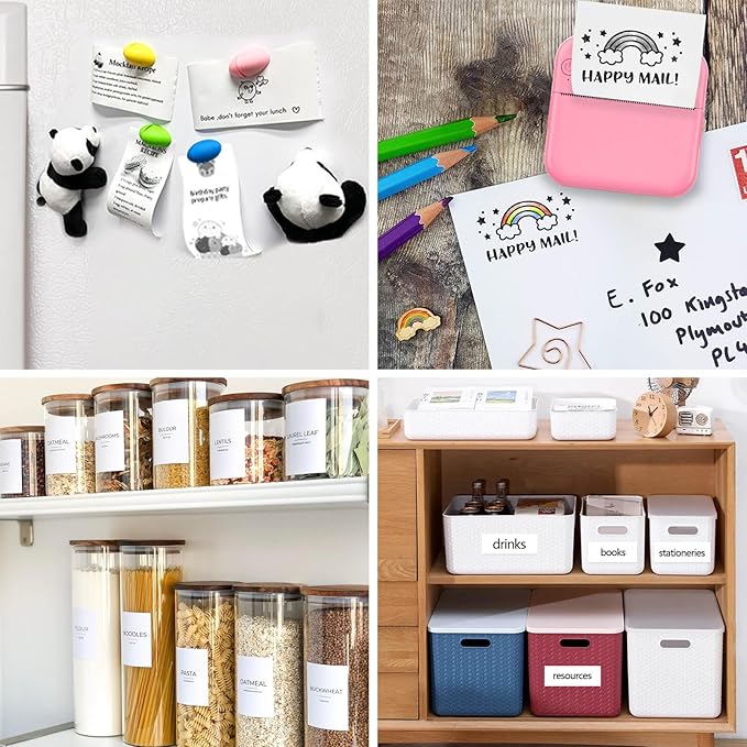 - Multipurpose Uses --- You can choose pictures from your phone album, write your text, or make labels, journals, notes, barcode, QR codes, receipt, etc. Kids can use this inkless pocket printer to print blank templates, fill color to exercise their imagination, also can use it to print learning materials or study notes. Parents can use this mini portable printer to organize shopping/to do lists, work plans or more, a great tool for all ages.