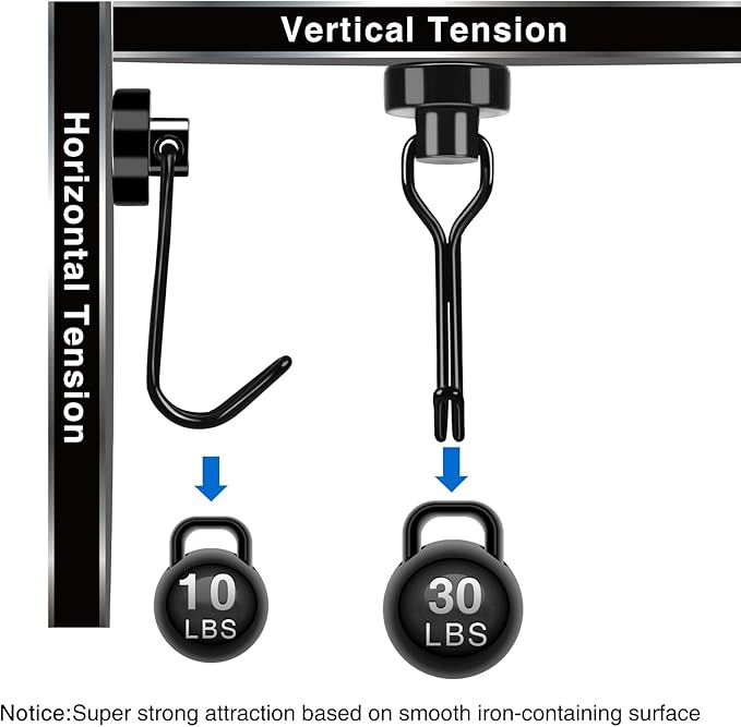 - 【 High Quality 】 The rotating swing magnetic hook heavy duty has a pulling force of 30 pounds and is based on horizontal applications - reducing by 2/3 if used vertically. The magnetic hook features a heavy and stable magnetic surface, with strong magnetism lasting forever!