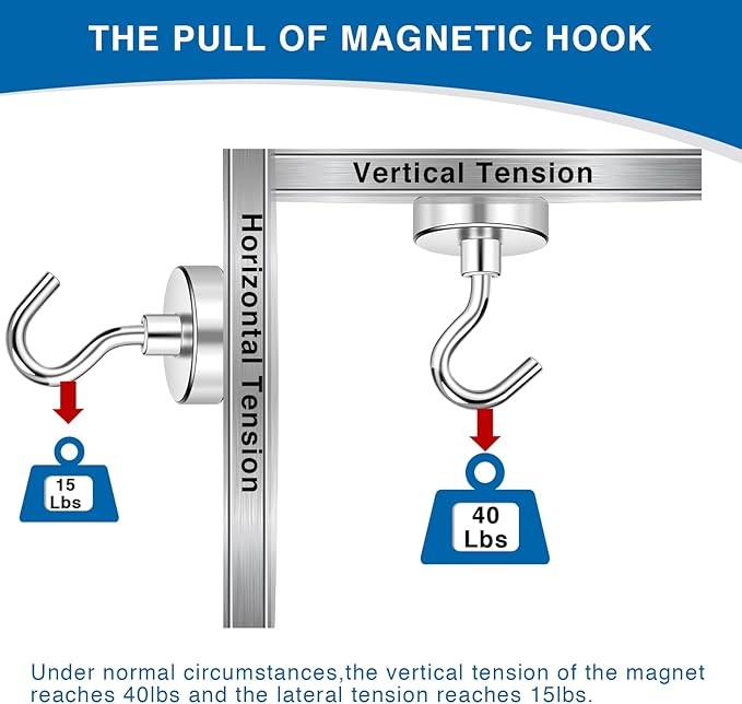 - 【STRONG MAGNETS】With our hook magnets, you can achieve a pulling force of over 40LBS in the vertical direction and 10LBS in the horizontal direction. These amazing sturdy and metal magnetic hooks for cruise ship are perfect for hanging the items you need, making your life more organized.