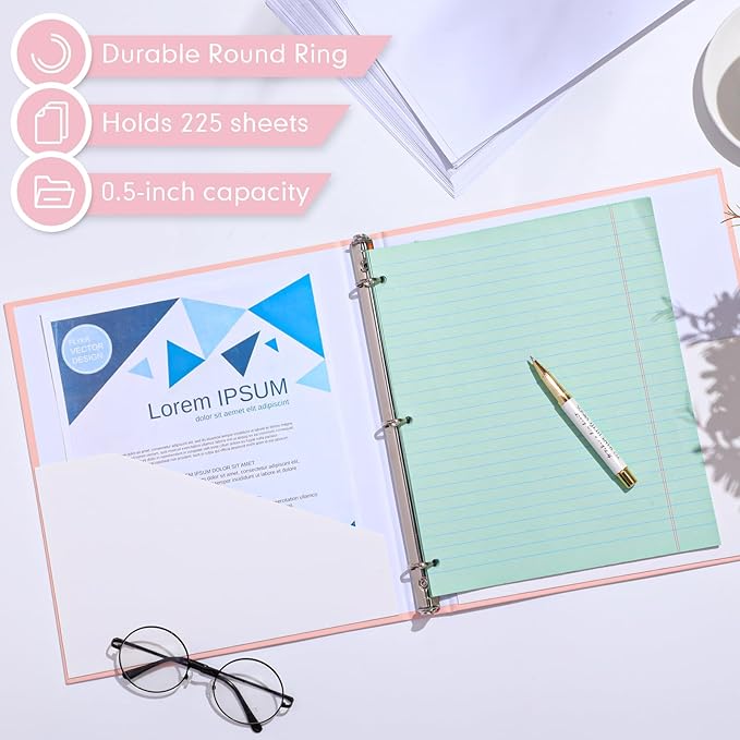 - 3 Ring Binder: our 1/2 inch binders are suitable for 3 holes punched paper, standard sized binder paper (about 8.5 x 11 inch) or most papers, holding numerous papers simultaneously; The ring inside can be easily opened, allowing you to take out or put in the paper quickly