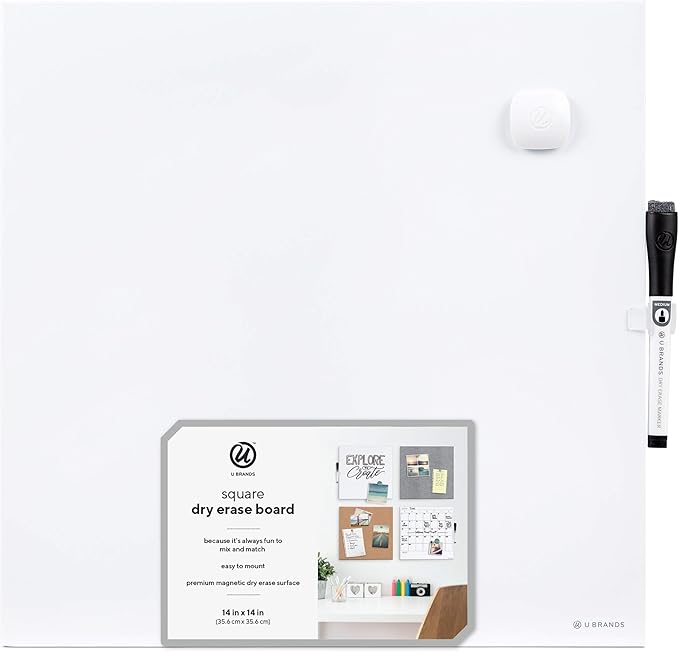 U Brands Magnetic Square Dry Erase Board, 14 x 14 Inches, Frameless (460U00-04) (Pack of 2)