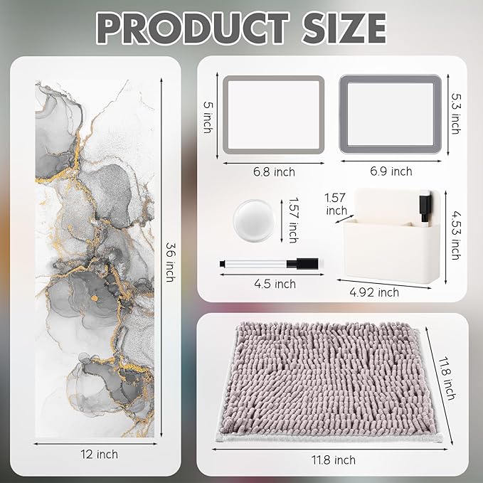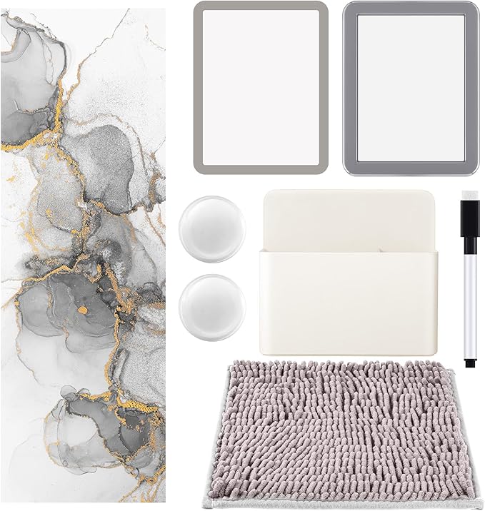Timgle 8 Pcs Magnetic Locker Set Including Magnetic Wallpaper Mirror Locker Organizer Carpet Whiteboard Dry Erase Marker Accessories for Office School Supplies(Gray,Marble Pattern)