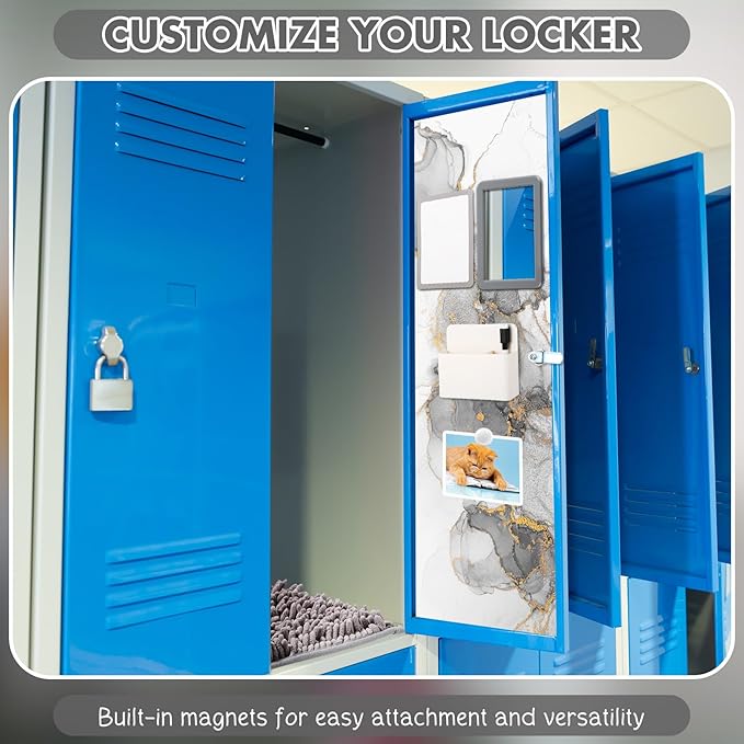- Complete Locker Set: you will receive 1 piece of locker wallpaper, 1 piece of locker rug, 1 piece of locker mirror magnetic, 1 piece of locker organizer for school, 1 piece of magnetic locker whiteboard, 1 piece of dry erase marker, and 2 pieces of locker magnets; The complete locker accessories can meet your daily use needs; Wallpaper's protective film cannot be torn off; If there are bubbles, they can be scraped flat with a ruler