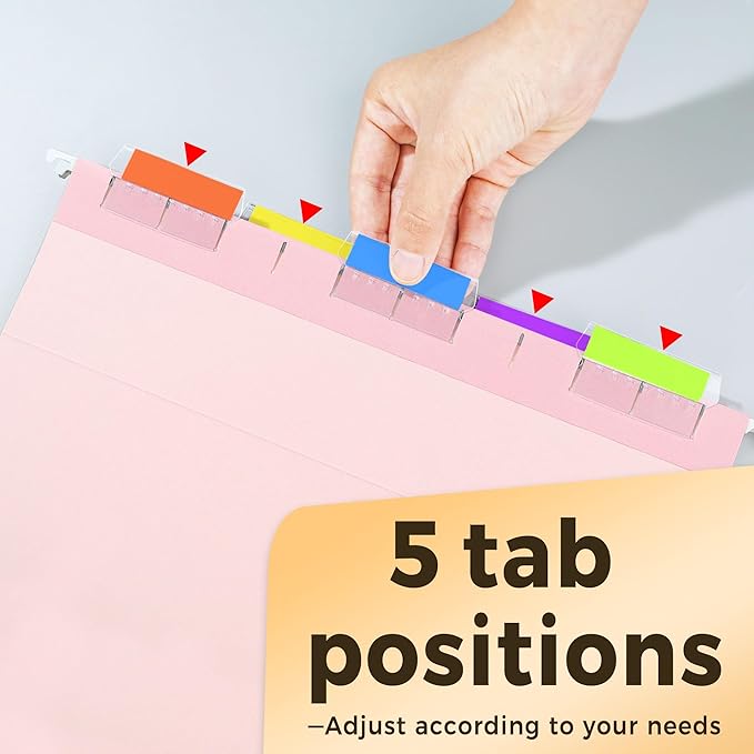 - With 1/5-cut Tabs: Include 25 pack 1/5-cut adjustable tabs and two sheets of blank label inserts. You can customize your file names on blank label to help you mark and categorize your documents efficiently.