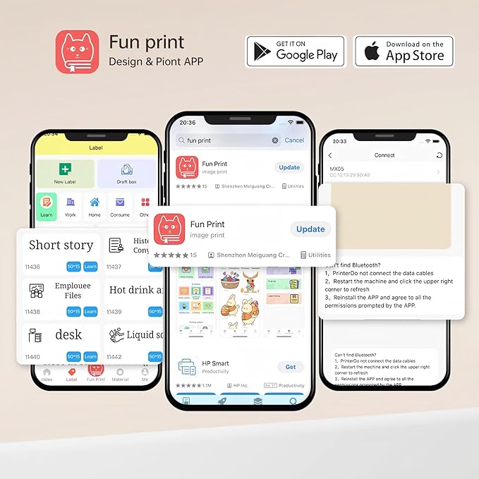 - [Customized Label Maker Machine]Cabaro thermal sticker printer comes with 3 rolls of 50mm-53mm thermal sticker paper, you can cut the printouts into labels of any shape and size just with a scissor so that all labeling needs can be covered at lower cost.