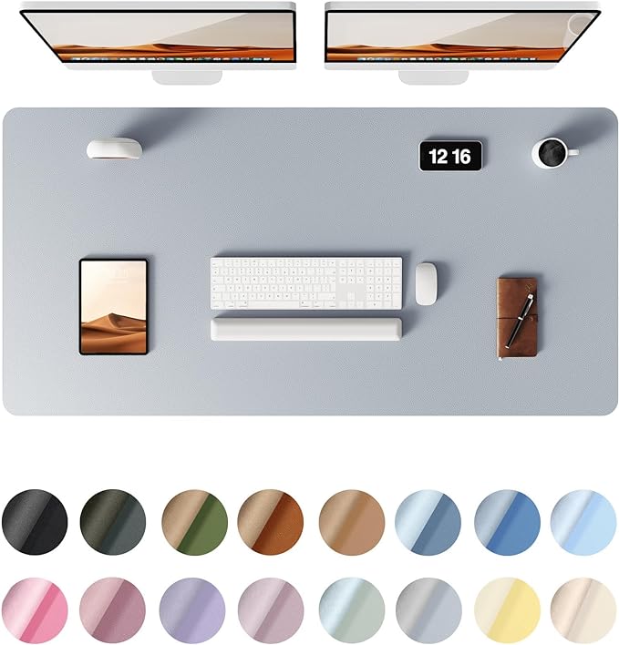 - DESK PROTECTOR: Durable PU Leather material adapted, which can protect your desk from scratches, stains, spills, heat and scuffs. Multi-color provided, change your mode by change the working atmosphere. Surface can be used as a large mouse pad, comfortable resting surface for your hands while writing, typing, and using the mouse. A must have office or study supplies.