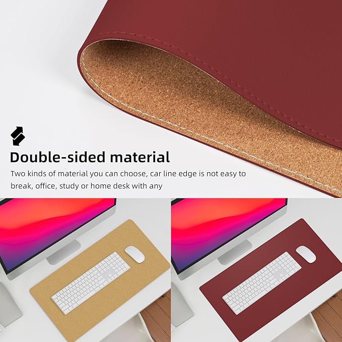 AFIING Leather Desk pad Protector, Large Desk mat with Natural Cork & PU Leather,Mouse pad,Non-Slip Office Desk Mat,Waterproof Desk Writing Pad for Office and Home (23.6in*13in, Red)