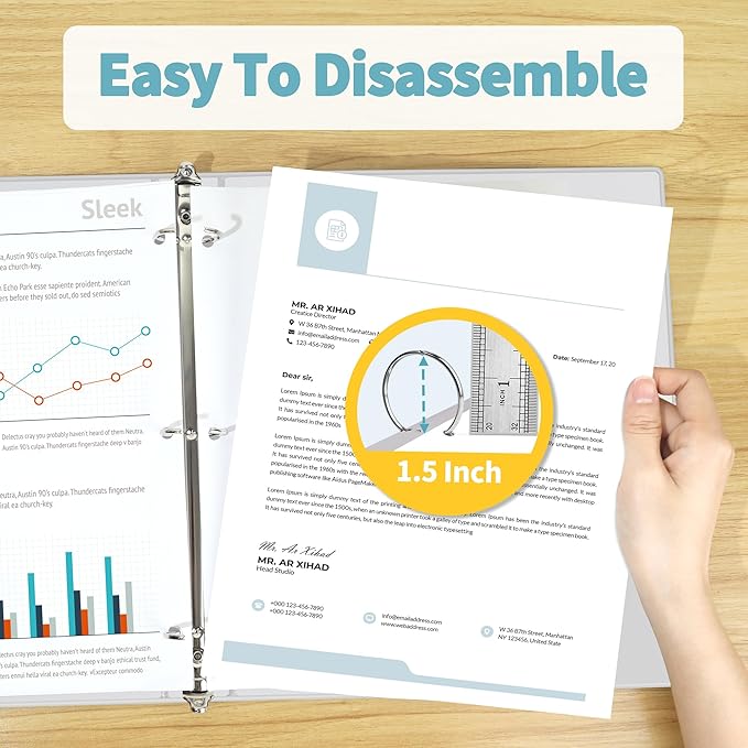 - LONG-TERM PRESERVATION: The 1.5 inch binder 3 ring is made of sturdy material and is moisture and dust resistant. This one and a half inches binder is PVC-free and non-stick. The color will always remain without fading during use. The durable rounded edges have a corner grinding process, which effectively prevents wear and tear