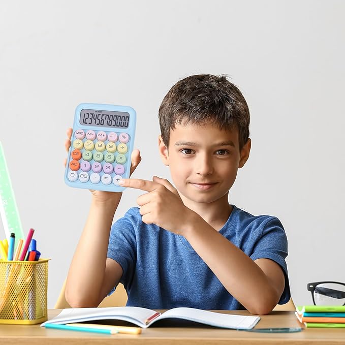 Mechanical Pushbutton Calculator,12 Digit Large LCD Display,Big Buttons Easy to Press,Colorful Candy Calculator,Automatic Sleep,with Battery.for Office,School, Home. (Blue)