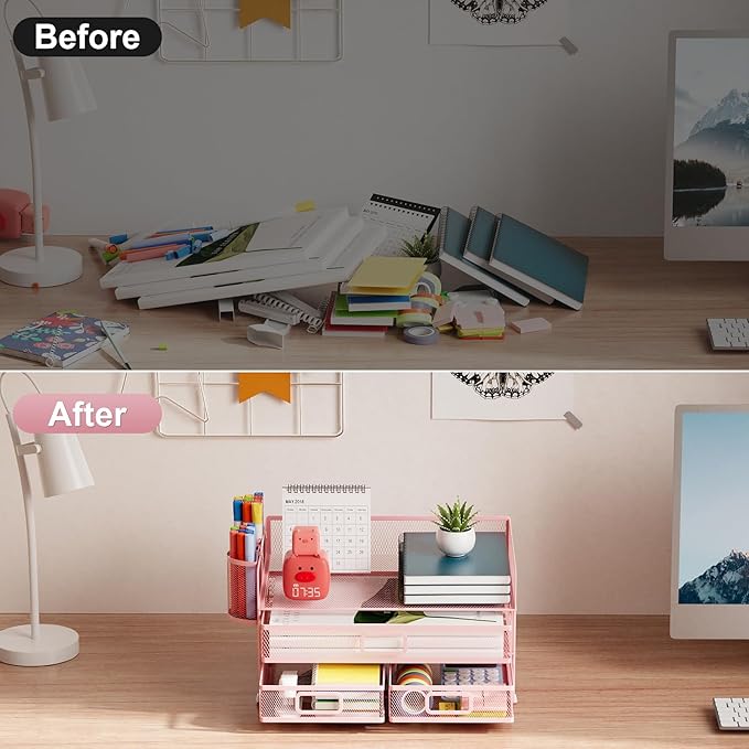 - 【Convenient Personal Storage】Compared with other mesh desktop organizer. The Multi-drawer design can help you store some important papers, whether it is personal letters or personal information can provide you with a certain privacy protection space.