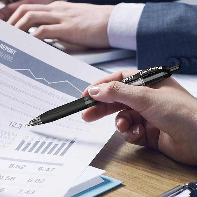 EYEYE G-103 Retractable Gel Pens Black 50 Pack, 0.5mm Extra Fine Point Ink Pen Quick Dry, Ballpoint Pen Fine Point Smooth Writing Pens for for Office School Supplies